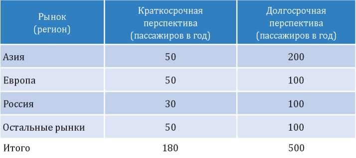 Рынки пассажиропотока между Россией и Европой, а также между Россией и Китаем не рассматриваются в связи с их заведомой незначительностью. Математики называют такой параметр «о малое» – величина, которой можно пренебречь.