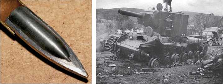 Именно подкалиберные снаряды, которые были в первое время у германской армии в достаточно приличном количестве и практически отсутствовали у Рабоче-крестьянской Красной армии, позволяли немецким пушкам останавливать даже такие сверхмощные танки, как КВ, и пробивать их броню.