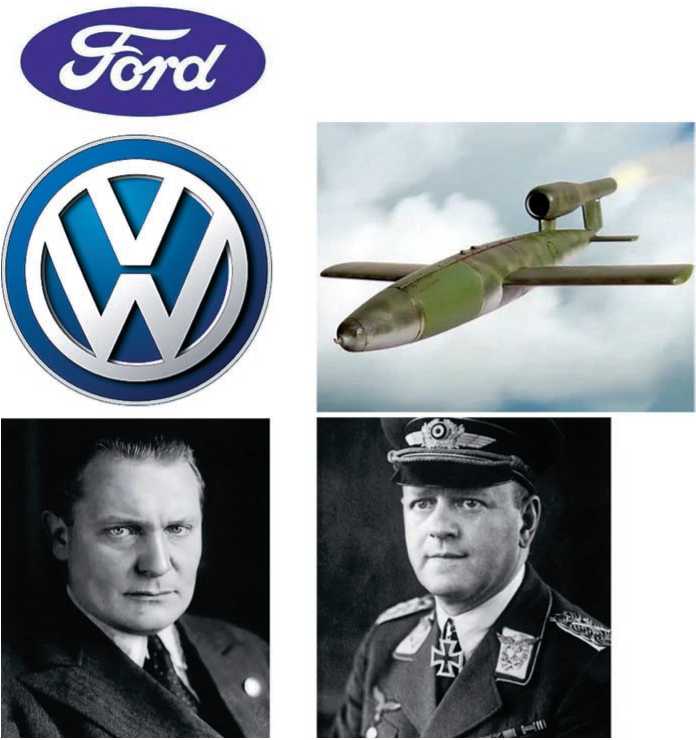 Генри Форд контролировал 100 % акций концерна «Фольксваген», который в том числе в 1944 году производил крылатые ракеты «Фау-1», которыми, в свою очередь, бомбардировали Лондон. Наивысший приоритет производству этих крылатых ракет дал Эрхардт Мильх – правая рука Геринга, по национальности – еврей.