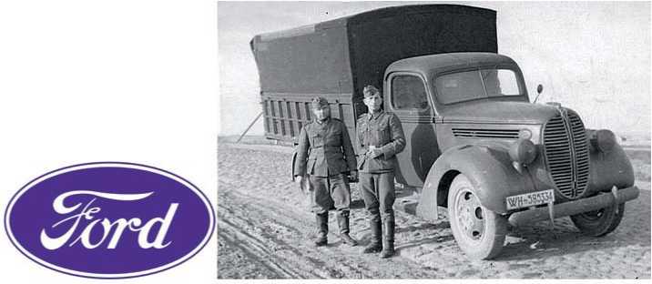 «В 1940 году Форд отказался собирать двигатели для самолетов воюющей с Германией Англии, в то время как во французском городе Пуасси его новый завод начал выпускать для гитлеровской армии авиадвигатели, грузовые и легковые автомобили, поступавшие на вооружение вермахта. И после 1941 года филиал „Форда“ в оккупированной Франции продолжал производить грузовики для вермахта, а другой его филиал, в Алжире, снабжал гитлеровского генерала Роммеля грузовиками и бронеавтомобилями. Даже в апреле 1943 года, когда Советский Союз вел кровопролитные бои с гитлеровцами, французские филиалы Форда работали исключительно для выгоды Германии. Грузовые „пятитонки“ и легковые „форды“ были основным армейским транспортом вермахта»[101]101