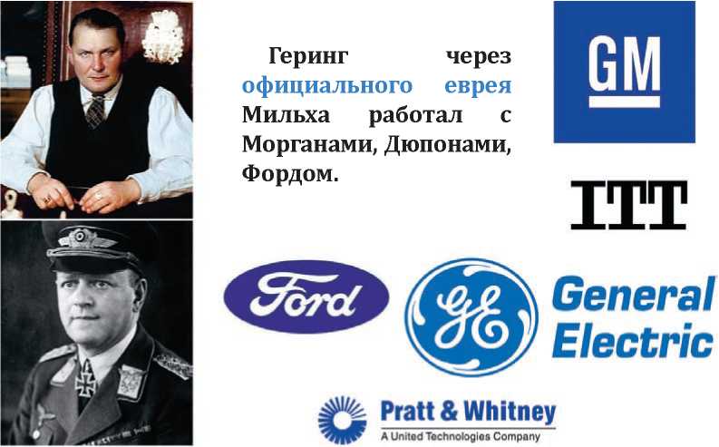Морганы и Дилоны через General Electric контролировали германскую радио– и электротехническую промышленность в лице AEG и Siemens (к 1933 году 30 % акций AEG принадлежали General Electric), через компанию связи ITT – 40 % телефонной сети Германии, тесно связанной с Германом Герингом [94]94