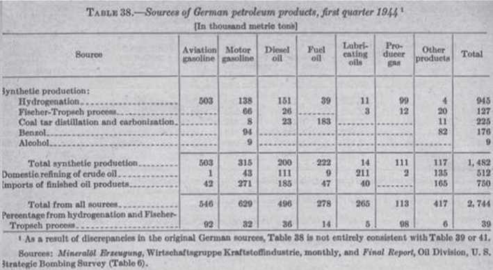 «Данные за первый квартал 1944 года – это фактически пик немецкого производства, поскольку в данный период (в первый квартал 1944 года) объекты нефтепереработки и заводы по производству синтетического горючего почти не подвергались бомбардировкам» [125]125
