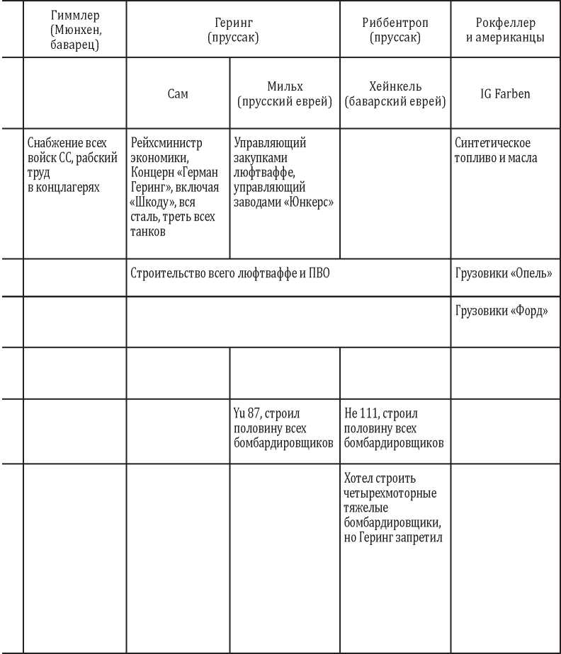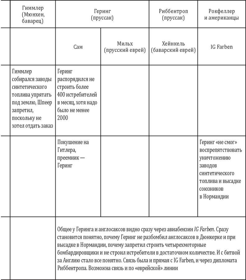 Также таблица «распила» в рейхе дает понимание, через кого эти триллионы выводились из рейха. У Геринга очевидным является «еврейский канал» через Мильха и Хейнкеля, а также понятным является прямой «американский канал».