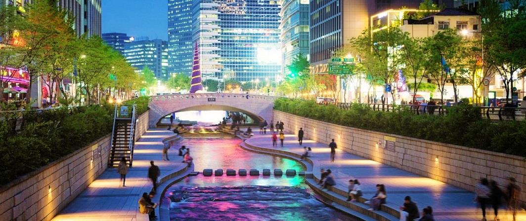 Набережная ручья Чхонгечхон. Ранний вечер.