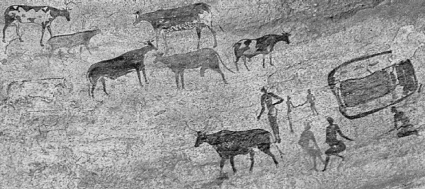 Примерно в середине II тысячелетия до н. э. в Тассили появляются изображения боевых колесниц, запряженных лошадьми. По рисункам на скалах их путь прослеживается от побережья Средиземного моря до верхней излучины Нигера. Рядом с колесницами на рисунках изображены люди, по облику, цвету кожи и одежде явно отличающиеся от всех типов местного населения. Это светлокожие, рослые воины, вооруженные мечами, копьями и дротиками, с круглыми щитами в руках. Кто они?