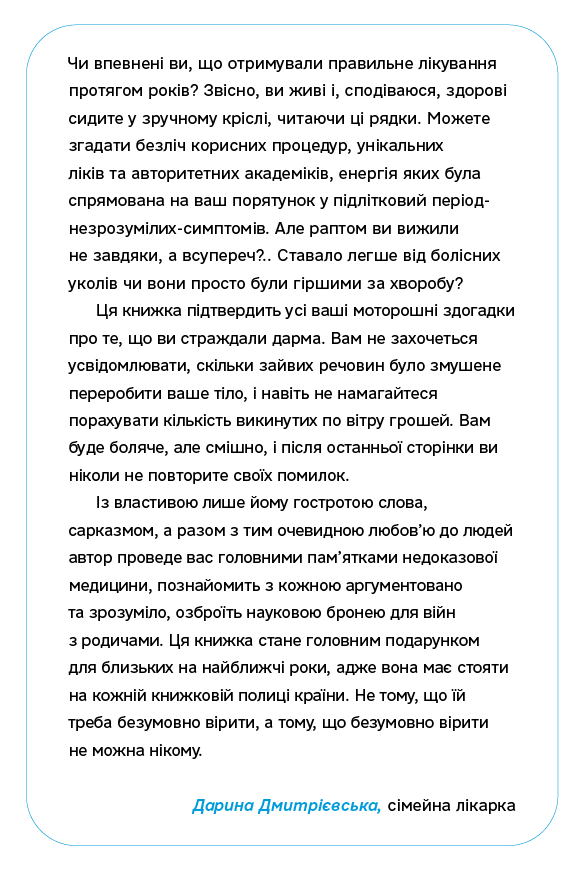 Через усю книжку, яку ви тримаєте в руках, червоною ниткою проходить головний меседж, який автор хотів би донести до аудиторії: «Не будьте легковірами!».
