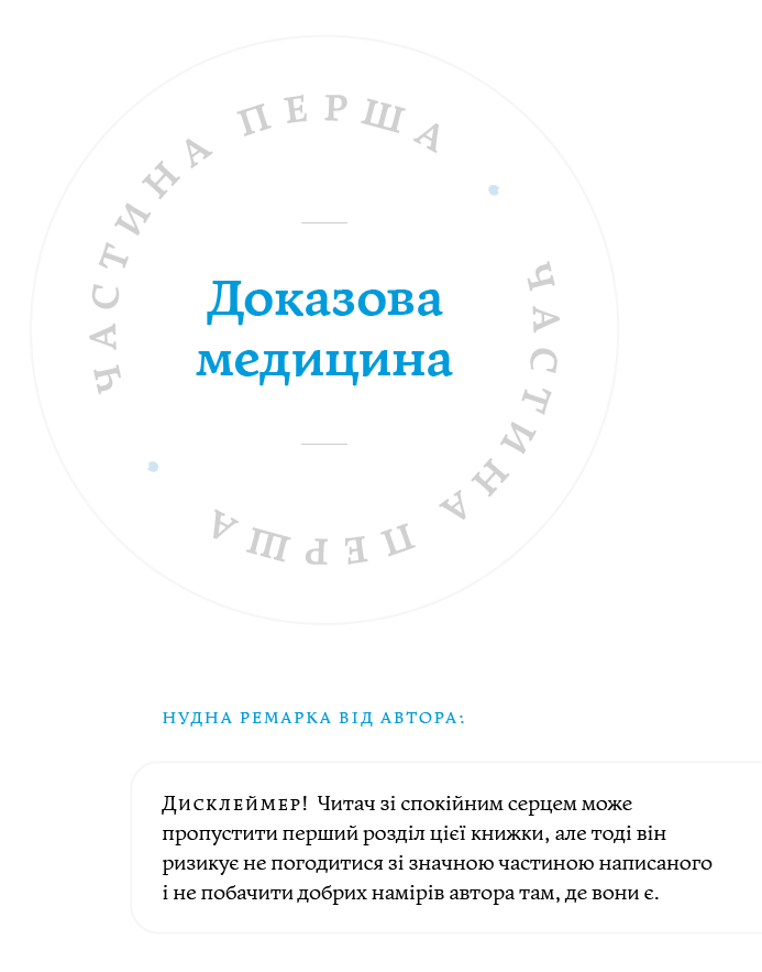 Автор цілком припускає, що його цінності можуть бути неприйнятними для певної частини читацької аудиторії. Але це не вбачається аж надто великою проблемою, бо книжка не задумувалась як інструмент підкорення колективної свідомості. Радше – як засіб показати альтернативний спосіб розмірковування над часто непростими питаннями. І хоча теми, охоплені цією книжкою, стосуються здебільшого проблем медицини в сучасному світі, викладена система інтелектуальних координат може (і, на скромну думку автора, мусить) застосовуватися для аналізу чи не всіх аспектів нашого життя.