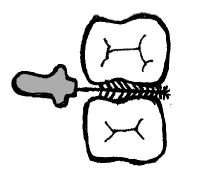 С помощью межзубных ершиков мы можем добраться до всех углублений и ниш зуба – при условии, что ершик заполняет межзубное пространство. Слишком маленький ершик, хотя и легко проходит между зубами, все же не чистит их тщательно. Таким образом, нам нужен не любой ершик, а ершик подходящего размера. Вполне может быть, что нам потребуется два, три или даже четыре разных по размеру ершика для очищения зубных рядов, потому что межзубные промежутки тоже разных размеров. Если щетинки изогнулись или износились, пришло время их заменить.