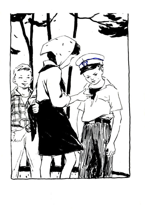 После линейки Костя и Митя быстро шли по дорожке. Костя говорил, что он видел фильм про Брестскую крепость и что там – все правда и все так, как рассказывала Тамара Васильевна, а Митя спорил, что нет, – в фильме все перепутано. На повороте дорожки они остановились, размахивая кулаками и крича. Сзади Кости послышались шаги. Он обернулся. Лида спокойно стояла перед ним.