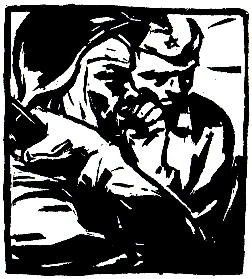 – И вот, ребята, началось у меня сидение в этой норе, во тьме кромешной. В кармане полтора сухаря, воды нет. Навалились на меня все мои болячки. Когда дрался, раны не чувствовал. А теперь болит, мозжит, то нога заноет, то шея, а голод так все внутри и сжимает. И жажда мучает, терпения нет. Стенку сырую полижешь, а много ли там влаги? Вот девочка сказала – страшно. Да, девочка, страшно мне было, потому что сидел я один в потемках, сделать ничего не мог и все мои думы были при мне. Первая моя дума была: «Как же так? Командир, а войско свое растерял? Где они все? Кто погиб, кто в плену, а кто, может быть, так же, как я, укрылся где-нибудь». И так ясно я своих бойцов увидел, как будто встали они передо мной в темноте и смотрят на меня с укором. А еще тревожило меня: где сын мой, где жена? Приведется ли увидеть когда-нибудь моих дорогих? И думал я о Родине. О том, что в огне она и в крови. Но раз я жив, значит, могу и буду драться, выгонять захватчиков с нашей земли.