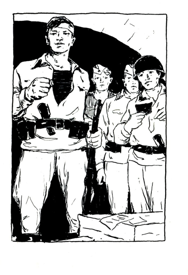 Ребята посторонились, пропуская в каземат Петра Гавриловича и его спутников. Петр Гаврилович встал за один из ящиков, как за стол, военный и «колхозник» стояли по бокам.