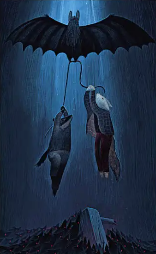 – Летучая мышь не может вытащить двух зверей. Тем более если один из них – барсук с лишним весом, – сказал Барсук Старший. – Но одного худого, подтянутого Барсукота – вполне вероятно. Хватайся за верёвку, сынок! Спасайся, пока эти твари не опрокинули стол!