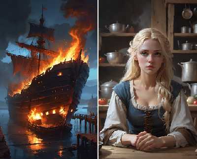 Когда вошла в таверну, увидела совершенно пустое помещение, брошенные недопитые стаканы с пивом и недоеденные блюда. Все матросы ринулись спасать корабль, и не было никаких гарантий, что они ещё сюда вернутся.