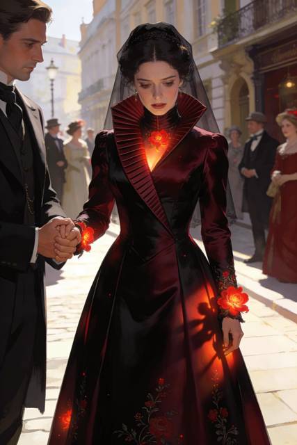 Вызывающий, бесстыдно алый шёлк, стоило ему оказаться под яркими лучами, стремительно темнел. Несколько секунд – и цвет платья изменился на глубокий, невероятно благородный бордово-чёрный.