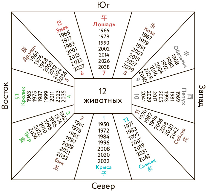 Таким образом, качества личности при знакомстве с новым для нас человеком будут открываться нам справа налево, постепенно проявляясь, начиная с животного, стоящего в Земной ветви года, и заканчивая животным, соответствующим Земной ветви часа.