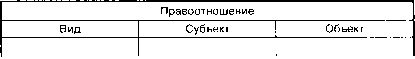 Это урок изучения нового материала и наиболее целесообразно провести его в форме лекции, по ходу которой ученикам можно предложить задание: самостоятельно выделить в каждом из правоотношений, о которых рассказывает учитель, его составляющие. Другими словами, четко назвать не только субъект, но и объект, т. е. то, по поводу чего возникает правоотношение. Материал целесообразно структурировать в таблицу: