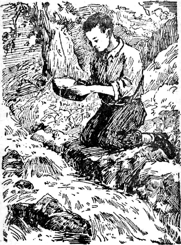 Тут он вспомнил о своей находке и удивился, как он мог о ней забыть. Всё заслонил Лёня. Теперь, когда товарищ был найден, и болезнь его, очевидно, шла на убыль, он снова подумал о золоте и готов был отправиться на поиски его. Но сначала нужно было каким-то способом перетащить Лёню в безопасное место.