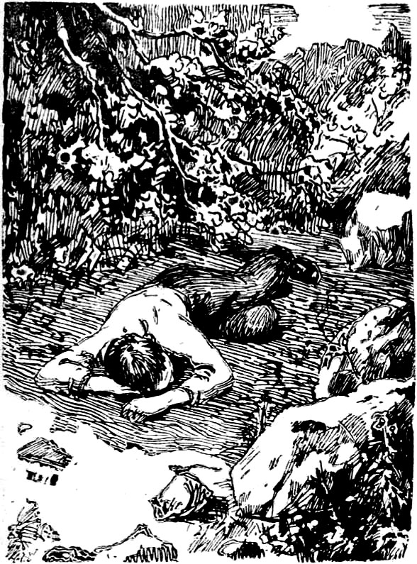 ШУРА не мог определить, сразу он очнулся после падения или через несколько часов. Он открыл глаза и опять закрыл их от боли: глаза были засорены песком и весь он был засыпан песком и обломками камней. Шура услышал журчание воды и ощутил холод в ногах. Очевидно, ступни его ног касались ручья. Он подобрал ноги и сел, почувствовав при этом сильную боль в боку и затылке.