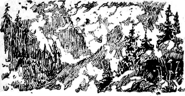 УТРОМ лениво и надоедливо шел дождь. Небо было серое и низкое, горы прятались за частой сеткой дождя.