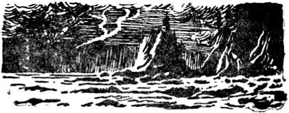 Слабо громыхал гром. Ветер налетел сильным порывом. Накатилась волна, качнула плот и. обрызгав ребят, умчалась к берегу. Плот понесло на скалы.