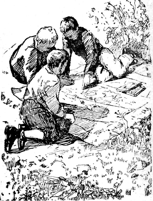 Но с неменьшим удовольствием они путешествовали по карте, разостлав её прямо на траве.