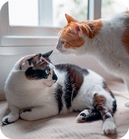 Пространство, где живет больше одной кошки, должно иметь достаточное количество разграничителей территории, чтобы кошки имели возможность не видеть друг друга не менее 40 % времени.