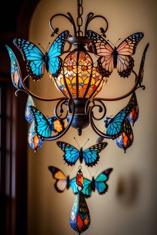 Он получился радужным, легким, в центре я прикрепила небольшую платформу, чтобы можно было туда поместить источник света. А вокруг платформы кружили и порхали разноцветные бабочки. К центру платформы я приделала цепь, которую тоже заодно прихватила из мастерской вместе со стеклами. Светильник можно теперь подвесить над кроватью или еще где-то, возможно даже в детской. Он будет раскачиваться и поворачиваться под действием воздуха, и цветные бабочки будут «летать» по всему помещению. Я очень хорошо представила себе эту картину и даже пожалела, что придется отдать кому-то такую красоту. Интересно, кому она достанется?