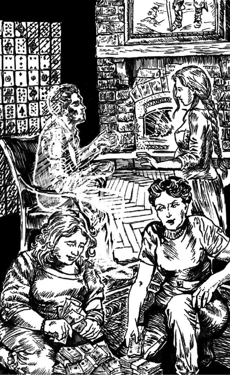 Как только Марина выгребла деньги из тайника, карты на панно вернулись в исходное положение, а Ленка увидела в холле на кресле у камина призрак покойника. Мертвый Сергей был бледен и едва различим, кожа казалась серой.