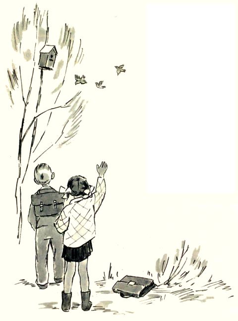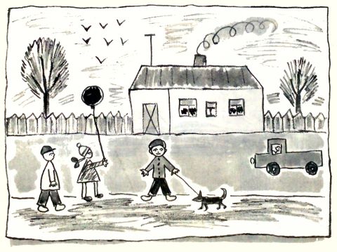 А когда кончил, посмотрел на свой рисунок, и что-то мне не понравилось. Взял я пририсовал дым из трубы – не то. В небе стаю птиц – всё равно не то.