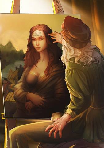 Буря эмоций одолела его, и никто не мог её успокоить. Он не смог сдержать гнев, не мог пройти мимо и не желал мириться с тем, что его любовь замужем за каким-то простым торговцем шёлком! Он рвал и метал, грозился сжечь картину, но Леонардо удалось утихомирить буйного товарища. Впервые в своей жизни Первый был настолько зол. Он хотел как-то испортить картину, указать наглецу, забравшему его женщину на то, что он просто ничтожество по сравнению с ним.