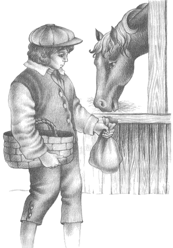Зазвичай мій конюх приходив на роботу о шостій ранку. Разом із ним приходив хлопчик, який завжди приносив зі собою накритого кошика. Найперше вони йшли до комори, де зберігалося зерно. Я бачив, як вони, ледь причинивши двері, відкривали скриню з вівсом і насипали зерно в невелику торбину, яку хлопець ніс додому.