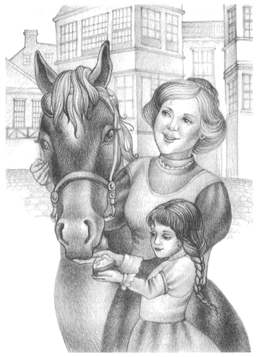 Наступного ранку, коли мене начистили, як на парад, Полі й Долі вийшли у двір, аби ближче познайомитися зі мною. Гарі, котрий ще від самого ранку допомагав батькові по господарству, запевнив їх, що з мене «будуть люди». Полі пригостила мене шматком яблука, а Долі – скибочкою хліба. Вони ходили коло мене так, наче я знову став колишнім Чорним Красенем. Звичайно, приємно, коли тебе оточують турботою і кажуть гарні речі, і я щосили намагався засвідчити цим людям, що хочу з ними дружити. Полі заявила, що я дуже гарний, і, якби не побиті коліна, мене б нізащо не поставили у кеб.