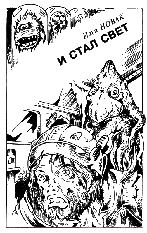 Шипение двери заставило его вновь повернуться. В открывшемся проеме стало видно небольшое помещение сферической формы, посреди него стоял предмет, напоминающий тот, которым он вооружился, и на этом предмете примостилось еще одно чудовище, такое же, как и та пара, что все еще смотрела на него слева. Оно не спало. Перед ним на еще одной широкой плоскости с четырьмя трубками внизу стоял куб, и одна его поверхность светилась, по ней снизу вверх ползли белые червяки. В тот момент, когда дверь открылась, чудовище дотрагивалось короткими отростками до еще одного предмета, лежащего на широкой плоскости перед кубом со светящейся плоскостью. Его конечности замелькали в воздухе, ударяя по предмету, когда оно оглянулось. Оно вскочило и, открыв ротовое отверстие, издало несколько громких звуков. Из его верхней части снизу и сверху торчали длинные белые нити; те из них, которые росли ниже, зашевелились, когда существо стало издавать звуки. Вытянув перед собой тощие, обтянутые бледной шкурой конечности с короткими растопыренными отростками, оно двинулось к нему.