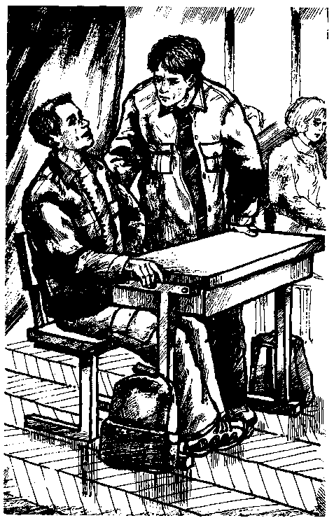 И Серега со всей силы двинул локтем Будку в бок. Тот вместе со стулом грохнулся в проход.