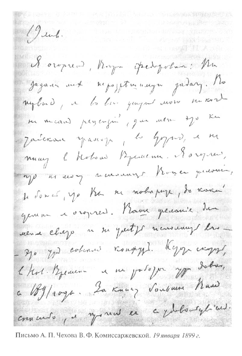 Комиссаржевская В. Ф. Письмо А. П. Чехову, январь 1903 г. // Комиссаржевская В. Ф. Письма актрисы. Воспоминания о ней. Материалы. С. 129.