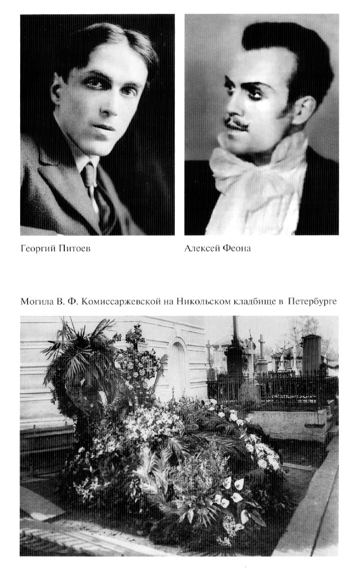 [Закрыть]. Быть может... Действительно, случилось именно так, что несомненно удачными, вошедшими в историю театра, покорившими публику были преимущественно (за исключением «Сестры Беатрисы») те постановки Мейерхольда, в которых Комиссаржевская не играла – «Балаганчик» А. Блока, «Жизнь человека» Л. Андреева, «Победа смерти» Ф. Сологуба. Трудно сказать, была ли здесь закономерность, подчёркивающая несовместимость её дарования с задачами, которые ставил перед собой Мейерхольд. Вероятно, была, и она не могла не чувствовать этого.