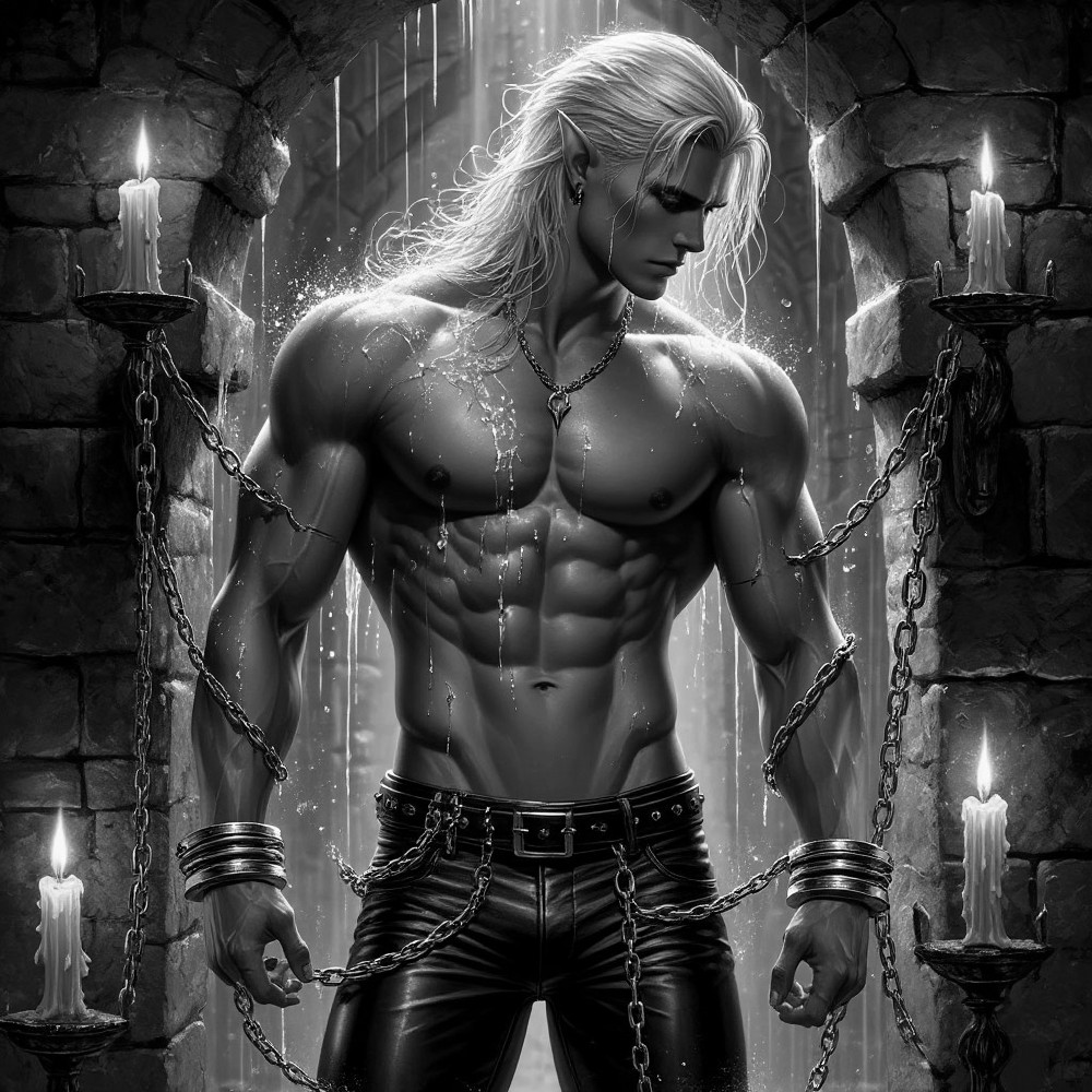 Теневир поднялся с постели, голый, в одном только кожаном ошейнике, который навевал мысли о БДСМ. Его солдат снова стоял по стойке смирно – да сколько же надо этому мужчине? – длинные волосы серебристыми волнами падали на спину и грудь.