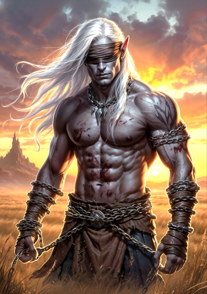 Точеные ноздри мужчины раздулись, втянув воздух, пропитанный едким дымом от костров. Широкая грудная клетка с развитыми мышцами раздалась от глубокого вдоха. Звякнула цепь. Дроу попятился от меня и вошел спиной в толпу. Несколько рук из этой самой толпы толкнули его обратно на арену.