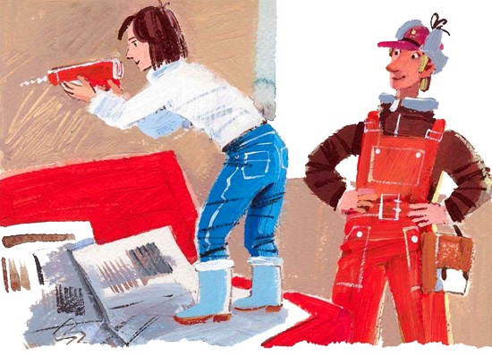 Мама вскочила на тахту и взяла дрель.