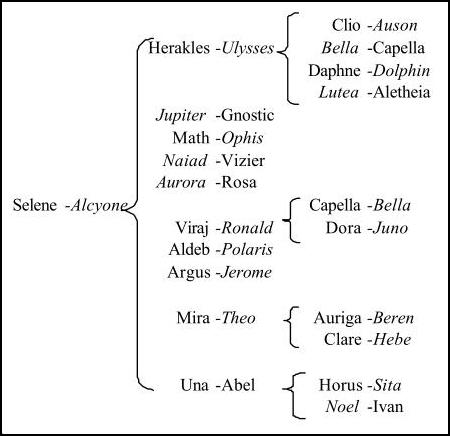 Марс женился на Вулкан [Томас Мор], и у них было три сына и две дочери. Наследником был Сириус, который женился на Электре (уже известной нам по многим жизням), а их старшей дочерью была Алкиона. Её воспитывали так, что она постоянно находилась в изоляции, пребывая в великолепном дворце, окружённом прекрасными садами, которые занимали площадь в несколько квадратных миль. Она почти ничего не знала о том ужасе, в который погрузилась её страна, иногда только слышала его некоторые слабые отражения из разговора своих рабов. Марс часто обсуждал этот вопрос со своими сыновьями и дочерьми, но они ничего не говорили об этом Алкионе, пока не произошло событие, которое привлекло к себе её внимание.