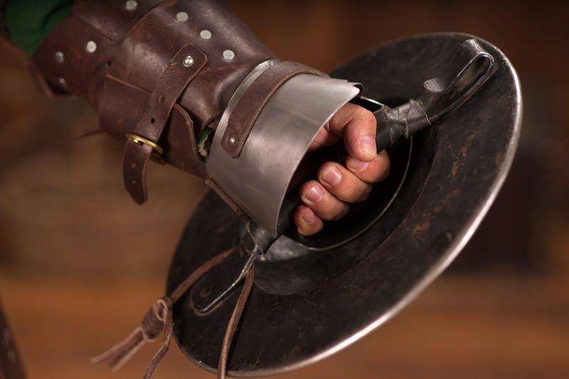 Баклер – (нем. Faustschild, фр. boce, bocete, rondelle de poing, ит. brochiero) – маленький, 20–40 см в диаметре (8–16 дюймов), чаще всего металлический круглый щит. Был рассчитан, главным образом, в качестве вспомогательного оружия с мечом или шпагой. Держался за ручку с обратной стороны. Баклеры имели только одну рукоятку, которую воин сжимал в кулаке, из-за чего их называли «кулачными щитами»