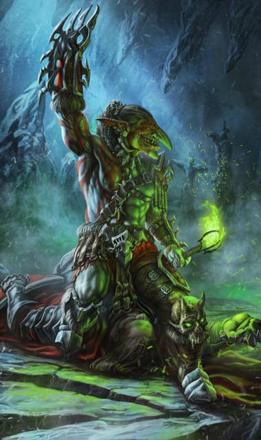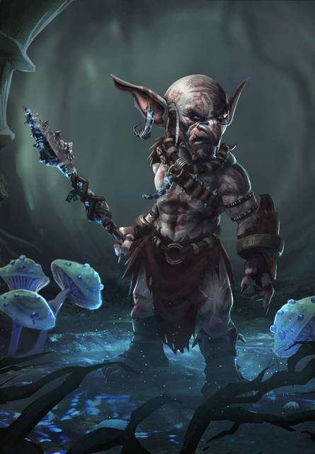Шаман гоблинов – очень редкий представитель зеленокожих. Особь, владеющая и могущая в магию – исключительный талант для гоблинов. Тем более что в этом случае гоблину скорее пошло уже далеко за первый десяток лет. Знание стихий и мистических искусств заставляло остальных побаиваться, уважать и опасаться своих шаманов. Что позволяло накопить побольше личных вещей и прожить более долгую жизнь, даже когда старые кости давали о себе знать.