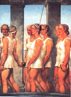 Символом Берлинской Олимпиады стала скульптура древнегреческого мастера Мирона (V век до н. э.) «Дискобол». 18 мая 1938 года Гитлер приказал купить одну из римских копий этой работы за баснословную по тем временам сумму в 914 748 рейхсмарок.