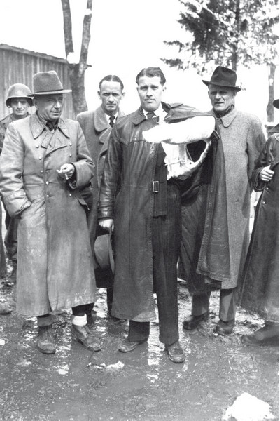 Немецкие ракетчики сдаются в плен: слева – Вальтер Дорнбергер, с загипсованной рукой – Вернер фон Браун (© NASA)