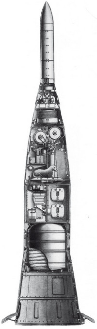 Головная часть ракеты «В-2А» с подопытной собакой в герметичном отсеке (© РКК «Энергия»)