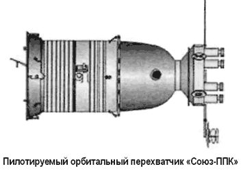 На основе пилотируемого орбитального корабля «7К-ОК» («Союз») планировалось создать космический перехватчик – «7К-П» («Союз-П»), который должен был решать проблему инспекции и вывода из строя космических аппаратов противника.