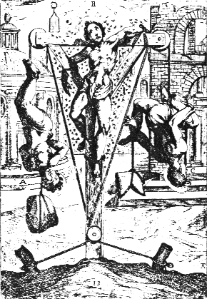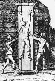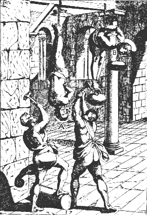 Очень популярно было подвешивание жертв за различные части тела: мужчин – ребром за крюк или за гениталии, женщин – за груди, предварительно прорезав их насквозь и пропустив в сквозные раны веревку. Последние официальные сообщения о подобном зверстве поступали из Ирака в 80-м году XX столетия, когда проводились массовые репрессии против восставших курдов. Людей также подвешивали как изображено на картинках: за одну или обе ноги, с грузом, привязанным к шее или ногам, могли подвешивать за волосы.