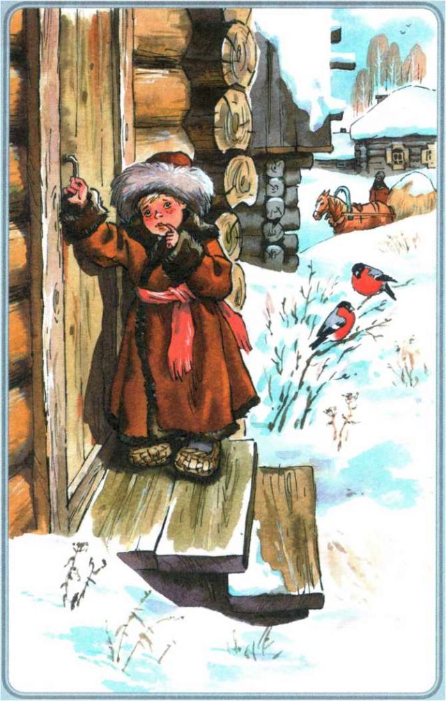 Ребята ушли в школу. Отец ещё с утра уехал в лес, мать ушла на подённую работу. Остались в избе Филипок да бабушка на печке.