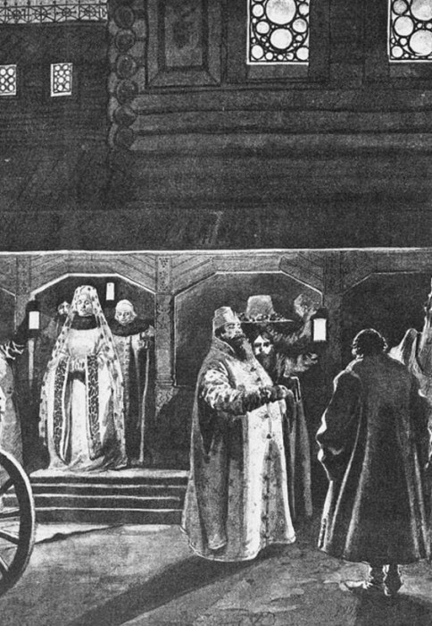 Прошел и воевода-князь с товарищами, с дьяками и подьячими в свой ближний приход и стал у самого амвона. Стоит, крестится и ждет, когда начнется служба. А в церкви почитай вовсе нет народу, – только он, князь, да свои приказные. И пусто в Божьем доме, словно и не праздник.