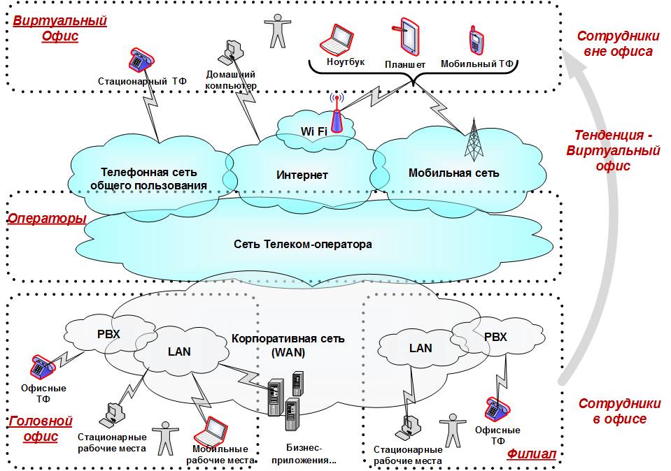 Рис. Расширение сетевого облака и переход к виртуальному офису